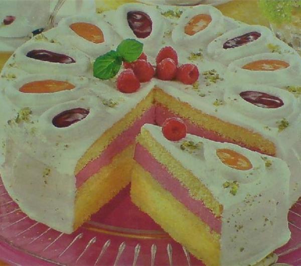 Dodaj przepis do ulubionych!(ilość porcji): 14(z pieczeniem / smażeniem): 50 minut(stopień trudności):Oceń przepisMożesz ocenić ten przepis nie rejestrując się u nas!Średnia ocena użytkowników : 4Ilość ocen : 1SkładnikLogo Ilość Czegomaliny mrożone 300 gramówblaty biszkoptowe 3 sztukcukier 3 łyżek stołowychcukier waniliowy 2 sztuktwarożek 500 gramówbrzoskwinie konserwowe 1 puszkażelatyna 6 łyżek deserowychśmietana kremówka 700 mililitrówkonfitura malinowa według uznaniakonfitura morelowa według uznaniaWykonanie:Połowę żelatyny namoczyć w niewielkiej ilości zimnej wody i rozpuścić podgrzewając. 300ml schłodzonej śmietany ubić. Osączone brzoskwinie zmiksować z cukrem waniliowym i wymieszać z bita śmietaną, polową zmielonego twarożku i żelatyną.Na spodzie tortownicy umieścić jeden biszkopt i rozsmarować na nim krem. Przykryć 2 biszkoptem i schłodzić.Resztę żelatyny namoczyć i rozpuścić. Ubić 200 ml śmietany. Zmiksować maliny, wymieszać z resztą twarożku, cukrem i cukrem waniliowym oraz połączyć z bita śmietaną i żelatyną. Krem rozsmarować na cieście i przykryć ostatnim biszkoptem. Ubić resztę śmietany i posmarować tort. Na wierzchu zrobić obwódki w kształcie jajeczek. Wypełnić je przetartymi konfiturami i ew. udekorować owocami i melisą.Autor: BeciaZobacz inne przepisy użykownika!Ciasta i DeseryKuchnia PolskaPotrawy z seremWielkanocDodaj komentarz:Jeśli chcesz dodać link do tego przepisu na swoją stronę, to wystarczy, że skopiujesz kod poniżej z pola tekstowego i wkleisz go na swoją stronę czy bloga: