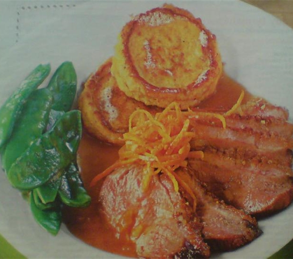 Dodaj przepis do ulubionych!(ilość porcji): 4(z pieczeniem / smażeniem): 100 minut(stopień trudności):Oceń przepisMożesz ocenić ten przepis nie rejestrując się u nas!Średnia ocena użytkowników : 0Ilość ocen : 0SkładnikLogo Ilość Czegogroszek cukrowy 600 gramówkukurydza konserwowa 400 gramówjajka 3 sztukpłatki kukurydziane 4 łyżek stołowychmąka 2 łyżek stołowychgałka muszkatołowa 1 szczyptapomarańcze 4 sztukcukier 1,5 łyżek stołowychfilet z piersi kaczki 2 sztukmargaryna 2 łyżek stołowychszalotki 2 sztukbulion drobiowy ciemny 200 mililitrówmasło 40 gramówzagęstnik do sosów ciemny 3 łyżek stołowychpieprz według uznaniasól według uznaniaWykonanie:Oczyszczony groszek blanszować 3 minuty w osolonej wodzie. Zahartować zimna wodą, odcedzić. Osączona kukurydzę krótko zmiksować z jajkami, płatkami kukurydzianymi i mąką. Doprawić do smaku sola, pieprzem oraz gałka i jeszcze raz krótko zmiksować.Z wyszorowanej pomarańczy specjalnym nożykiem ściąć paseczki skórki. Z pomarańczy wycisnąć sok i przecedzić. Skarmelizować 1 łyżkę cukru, dodać skórkę pomarańczową i połowę soku pomarańczowego. Podgrzewać tak długo, aż skórka zmięknie.Skórkę na filetach kaczki naciąć ostrym nożem, tworząc kratkę. Piekarnik rozgrzać do 85 stopni. Filety ułożyć na zimnej patelni skórką w dół. Rozgrzać patelnie i smażyć filety tak długo, aż skórka będzie chrupiąca - ok. 8 minut. Na drugiej patelni rozgrzać margarynę i z ciasta kukurydzianego smażyć placuszki z obu stron na zloty kolor. Gotowe placuszki włożyć do ciepłego piekarnika.Oczyszczone szalotki pokroić w drobna kostkę. Filety z kaczki obrócić i usmażyć po stronie bez skórki. Usmażone mięso wstawić do ciepłego piekarnika. Sos ze smażenia kaczki odlać. Szalotki zeszklić na patelni. Wlać resztę soku pomarańczowego i bulion drobiowy i gotować tak długo, aż 2/3 sosu odparuje.Groszek podsmażyć na patelni z 10g masła, doprawić solą i 1/2 łyżki cukru. Sos zagęścić zagęstnikiem, dodać 20g masła i wymieszać. Pozostałe masło dodać do karmelu ze skórką i wymieszać.Filety z kaczki pokroić. Podawać z placuszkami, groszkiem, sosem i karmelem.Autor: BeciaZobacz inne przepisy użykownika!Kuchnia PolskaPotrawy z MięsaDodaj komentarz:Jeśli chcesz dodać link do tego przepisu na swoją stronę, to wystarczy, że skopiujesz kod poniżej z pola tekstowego i wkleisz go na swoją stronę czy bloga: