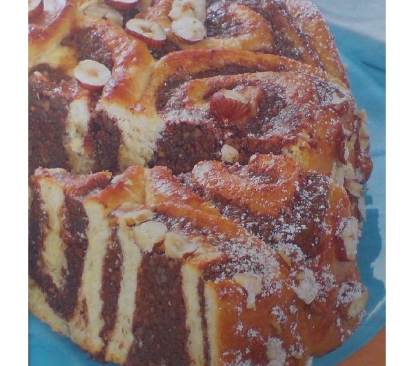 Dodaj przepis do ulubionych!(ilość porcji): 12(z pieczeniem / smażeniem): 120 minut(stopień trudności):Oceń przepisMożesz ocenić ten przepis nie rejestrując się u nas!Średnia ocena użytkowników : 0Ilość ocen : 0SkładnikLogo Ilość Czegomąka 400 gramówcukier 150 gramówmleko 250 mililitrówdrożdże 40 gramówmargaryna 100 gramówcukier waniliowy 1 sztuksól 1 szczyptaCynamon 0,5 łyżek deserowychkakao 2 łyżek deserowychorzechy laskowe - mielone 300 gramówjajka 2 sztukpłatki migdałowe 50 gramówkonfitura morelowa 1 łyżek stołowychcukier puder 1 łyżek stołowychWykonanie:W przesianej mące zrobić dołek, wsypać 10g cukru, w kruszyć drożdże, wlać 125 ml ciepłego mleka i lekko zagnieść ciasto. Przykryć i odstawić na 15 minut w ciepłe miejsce.Rozpuszczoną, ostudzona margarynę, 40g cukru, cukier waniliowy, sól oraz jajko dodać do wcześniej zagniecionego ciasta i wyrobić. Przykryć i znów odstawić na 30 minut w ciepłe miejsce.Zagotować 125 ml mleka z 100g cukru, cynamonem i kakao. Wymieszać z orzechami i przestudzić. Dodać białko i wymieszać.Ciasto rozwałkować na prostokąt 30 x 40 cm na wysypanej maka stolicy. Na ciasto wyłożyć masę orzechową. Zrolować ciasto zaczynając od dłuższej strony. Pokroić je na plastry o szerokości 4 cm. Jeden obok drugiego układać na posmarowanej tłuszczem tortownicy i pozostawić na 20 minut. Wierzch ciasta posmarować roztrzepanym żółtkiem i posypać 20g płatków migdałowych. Piec ok. 40 minut w 200 stopniach, wystudzić.Podgrzaną konfiturę przetrzeć przez sito. Ciasto wyjąć z formy i brzegi posmarować dokładnie konfiturą i posypać 30g płatków migdałowych, a wierzch ciasta udekorować cukrem pudrem.Autor: BeciaZobacz inne przepisy użykownika!Ciasta i DeseryKuchnia PolskaWigiliaDodaj komentarz:Jeśli chcesz dodać link do tego przepisu na swoją stronę, to wystarczy, że skopiujesz kod poniżej z pola tekstowego i wkleisz go na swoją stronę czy bloga: