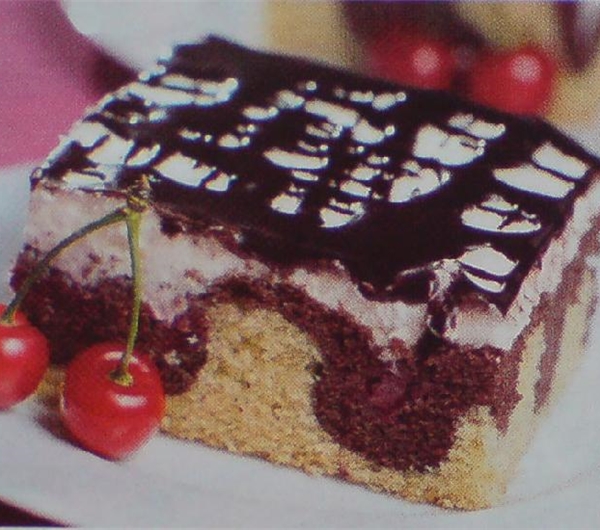 Dodaj przepis do ulubionych!(ilość porcji): 15(z pieczeniem / smażeniem): 100 minut(stopień trudności):Oceń przepisMożesz ocenić ten przepis nie rejestrując się u nas!Średnia ocena użytkowników : 5Ilość ocen : 1SkładnikLogo Ilość Czegowiśnie 400 gramówmargaryna 1 sztukcukier 250 gramówjajka 6 sztukmąka 400 gramówproszek do pieczenia 2 łyżek deserowychkakao 2 łyżek stołowychmleko 2 szklanekcukier 2 łyżek stołowychbudyń waniliowy 1 sztukmasło 1 sztukwódka owocowa 2 łyżek stołowychpolewa czekoladowa 1 sztukWykonanie:Miękka margarynę utrzeć z cukrem, dodając kolejno po jajku. Połączyć z mąką wymieszaną z proszkiem do pieczenia. Ciasto podzielić na 2 części, do jednej wsypać kakao i wymieszać. Na dużej blaszce, wyścielonej papierem do pieczenia rozsmarować najpierw jasne ciasto, a na nim ciemne. Równomiernie posypać oczyszczonymi, wydrylowanymi wiśniami i piec 30 minut w 180 stopniach. Budyń ugotować wg przepisu na opakowaniu, ostudzić. Miękkie masło utrzeć na puszysta masę, dodając po łyżce zimny budyń i po kilka kropli wódki. Kremem równomiernie posmarować wierzch ciasta i dekoracyjnie polać polewą czekoladową.Autor: BeciaZobacz inne przepisy użykownika!Ciasta i DeseryKuchnia PolskaDodaj komentarz:Jeśli chcesz dodać link do tego przepisu na swoją stronę, to wystarczy, że skopiujesz kod poniżej z pola tekstowego i wkleisz go na swoją stronę czy bloga: