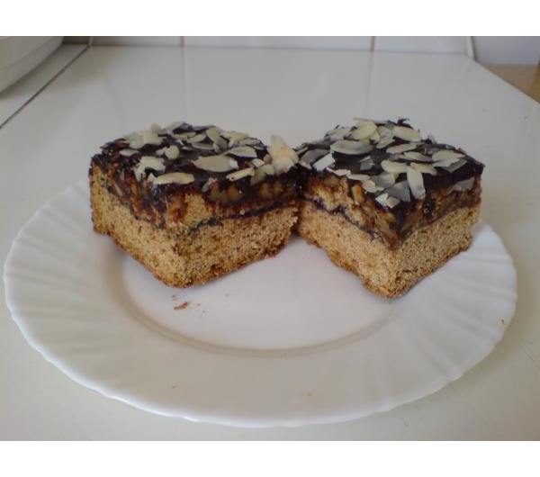 Dodaj przepis do ulubionych!(ilość porcji): 15(z pieczeniem / smażeniem): 100 minut(stopień trudności):Oceń przepisMożesz ocenić ten przepis nie rejestrując się u nas!Średnia ocena użytkowników : 0Ilość ocen : 0SkładnikLogo Ilość Czegomąka 3 szklanekmargaryna 225 gramówsmalec 2 łyżek stołowychśmietana 3 łyżek stołowychsoda oczyszczona 2 łyżek deserowychjajko 2 sztukcukier 1.5 szklanekcukier waniliowy 10 gramówmiód 3 łyżek stołowychsól według uznaniaorzechy włoskie 3 szklanekkakao 1.5 łyżek stołowychmąka ziemniaczana 1 łyżek deserowychmleko 3 łyżek stołowychdżem z czarnej porzeczki 1 sztukpłatki migdałowe 3 łyżek stołowychWykonanie:Wykonanie ciasta: na stolnicę przesiać mąkę, dodać miękką margarynę i smalec, śmietanę, sodę, cukier, cukier waniliowy, jajka i szczyptę soli, wyrobić dobrze ciasto. 1/3 ciasta dać do zamrożenia na 30 minut, a do pozostałego ciasta dodać jedną łyżkę miodu i dobrze połączyć. Rozwałkować i wyłożyć na dno dużej blachy, wyścielonej papierem do pieczenia. Na tym cieście rozsmarować dżem.Wykonanie masy orzechowej: do garnka włożyć margarynę, cukier, miód i zagotować na małym ogniu ciągle mieszając, teraz dodać posiekane orzechy i chwilę pogotować.Na warstwę dżemu zetrzeć na grubych oczkach zamrożone ciasto, a na nie rozłożyć równomiernie, łyżką, ciepłą masę orzechową. Piec ok. 40 minut w 180 stopniach. Zimne ciasto oblać polewą kakaową.Wykonanie polewy kakaowej: do rondelka włożyć margarynę, kakao, mąkę, cukier i mleko. Mieszając podgrzewać na małym ogniu, aż masa zgęstnieje. Zdjąć z ognia i dalej mieszać, aż ostygnie (wykonanie 5 minut). Ciepłą polewą oblać zimny placek i obsypać płatkami migdałowymi.Uwagi:Ciasto: mąka - 3 szklanki, margaryna - 0,5 kostki, smalec - 2 łyżki, śmietana - 3 łyżki, soda oczyszczona - 2 łyżeczki, jajka - 2 sztuki, cukier - 0,5 szklanki, cukier waniliowy - 10g, szczypta soli, miód - 1 łyżka Masa orzechowa: posiekane orzechy włoskie - 3 szklanki, margaryna - 0,5 kostki, cukier - 0,5 szklanki, miód - 2 łyżki Polewa kakaowa: kakao - 1,5 łyżki, margaryna - 50g, cukier - 0,5 szklanki, mąka ziemniaczana - 1 łyżeczka, mleko - 3 łyżki, dżem z czarnej porzeczki - 1 słoiczek, płatki migdałowe - 3 łyżkiAutor: BeciaZobacz inne przepisy użykownika!Ciasta i DeseryDodaj komentarz:Jeśli chcesz dodać link do tego przepisu na swoją stronę, to wystarczy, że skopiujesz kod poniżej z pola tekstowego i wkleisz go na swoją stronę czy bloga: