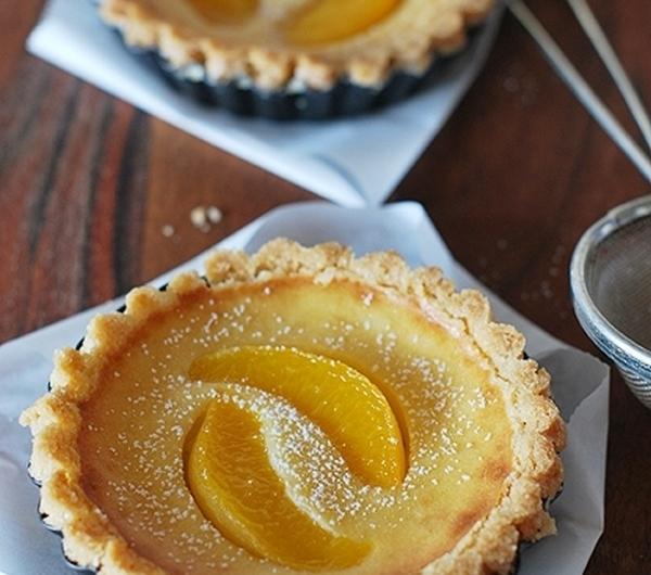 Składniki : na 4 sztuki40 g zimnego masła,5 łyżek cukru,80 g mąki,szczypta soli,1 jajko+1 żółtko,1 puszka brzoskwiń (314 ml) – mnie wystarczyło kilka,2 łyżeczki cukru wanilinowego,100 g chudego twarogu,3 łyżki kwaśnej śmietany,1 łyżka budyniu waniliowego (w proszku),1-2 łyżki cukru pudru.Wykonanie :Pokrojone na kawałki masło, 3 łyżki cukru, mąkę, żółtko i sól zagnieść na gładkie ciasto. Zawinąć je w folię i schłodzić.Brzoskwinie osączyć, sok odstawić. Jajko utrzeć z 2 łyżkami cukru i cukrem wanilinowym. Dodać ser, śmietanę, budyń i 2-3 łyżki soku brzoskwiniowego.4 formy do tartaletek (ok. 10 cm średnicy) posmarować tłuszczem. Ciasto podzielić na 4 części. Wykleić foremki. Spody ponakłuwac widelcem.Osączone brzoskwinie wymieszać z masą serową. Rozłożyć na tartaletkach. Piec 35-40 min w temp. 175 st. C (termoobieg 150 st. C). Wyjąć, lekko przestudzić i wyjąć z foremek. Pozostawić do całkowitego wystygnięcia. Przed podaniem posypać cukrem pudrem.