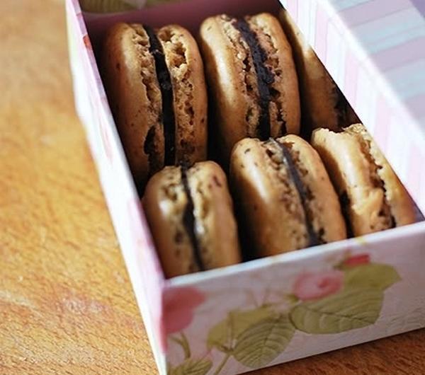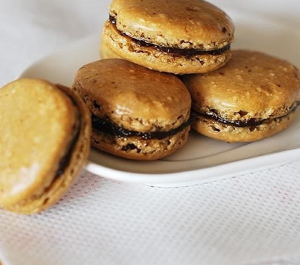 Składniki :makaroniki :100g białek (mniej więcej 3)40g drobnego cukru200g cukru pudru120g mielonych migdałów1 łyżka kawy mielonej lub rozpuszczalnejkrem czekoladowy:100g czekoladykilka łyżek śmietanki lub oleju, jeśli musimy unikać nabiałuewentualnie cukier do smaku (bez przesady, makaroniki są dość słodkie, pasuje więc do nich krem nieco bardziej wytrawny)ewentualnie trochę rumu lub pasującego likieruPrzygotowanie :Makaroniki : białka trzeba rozdzielić przynajmniej dzień wcześniej. Trzymamy je przykryte w lodówce i wyjmujemy nieco wcześniej przed przygotowaniem makaroników, tak aby były mniej więcej w temperaturze pokojowej.Migdały trzeba zmielić razem z kawą i cukrem pudrem w malakserze na drobny proszek.Białka ubić na dość sztywną pianę, dodać drobny cukier i jeszcze chwilę ubijać. Piana ma być sztywna ale nie ma się rwać (to właściwie ogólna zasada odnośnie ubijania piany z białek).Teraz będzie najważniejszy krok dla makaroników. Do piany wsypujemy migdały zmielone z kawą i cukrem pudrem i mieszamy wszystko razem łyżką. Mieszana substancja będzie robiła się coraz rzadsza, trzeba uchwycić właściwy moment. Musi być na tyle rzadka, żeby makaroniki się nieco rozpłynęły, ale nie aż tak by były płaskie jak opłatki. Można sprawdzać wykładając trochę masy na talerzyk. Jeśli po wstrząśnięciu talerzykiem masa rozpłynie się na równiutkie, ale wypukłe kółko to jest ok, a jak trzyma krzywy kształt to mieszamy jeszcze 2-3 razy. Jeśli się rozpływa za szybko to jest za późno i zaczynamy od nowa.Można nakładać makaroniki łyżeczką ale łatwiej to zrobić z rękawa cukierniczego. Jeśli nie mamy to bierzemy torebkę ze sztywnej folii i ucinamy jeden róg, też będzie dobrze. Można również zwinąć nieco pergaminu w tytkę. Końcówka do szprycowania musi być okrągła i dość szeroka (mniej więcej 1cm średnicy), jeśli takiej nie mamy to nie bierzemy żadnej tylko szprycujemy wprost z rękawa.Na blachę wyłożoną pergaminem nakładamy okrągłe ciasteczka o średnicy około 3 cm w odstępach około 2-3cm. Jak skończymy to trzeba uderzyć blachą płasko w stół, tak aby makaroniki się nieco rozpłynęły. Z tej proporcji wyjdą 2 blachy ciasteczek.Odstawiamy przygotowane blachy na około godzinę do obeschnięcia. Nagrzewamy piekarnik do 160°C, wstawiamy ciasteczka i pieczemy przez jakieś 15 minut. Potem wyjmujemy i odstawiamy do wystygnięcia. Dopiero potem odklejamy je od papieru (ciepłe mogą się rozwarstwić).Krem czekoladowy : czekoladę roztapiamy w kąpieli wodnej razem ze śmietanką lub olejem. Można dodać rum lub likier, wymieszać aż krem będzie gładki i odstawić do przestygnięcia.Nakładać odrobinę czekolady na ciasteczka i sklejać je parami.Uwagi: zamiast kawy można użyć kakao, zielonej herbaty lub innych sproszkowanych substancji smakowych. Często dodaje się też barwniki spożywcze dla uzyskania pojechanych kolorów makaroników, przy czym one również powinny być w proszku a nie w płynie, żeby nie rozcieńczać masy makaronikowej. Nadziewamy ulubionym kremem, zazwyczaj pasującym kolorystycznie i smakowo do ciasteczek.