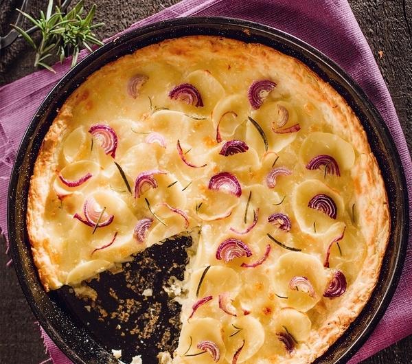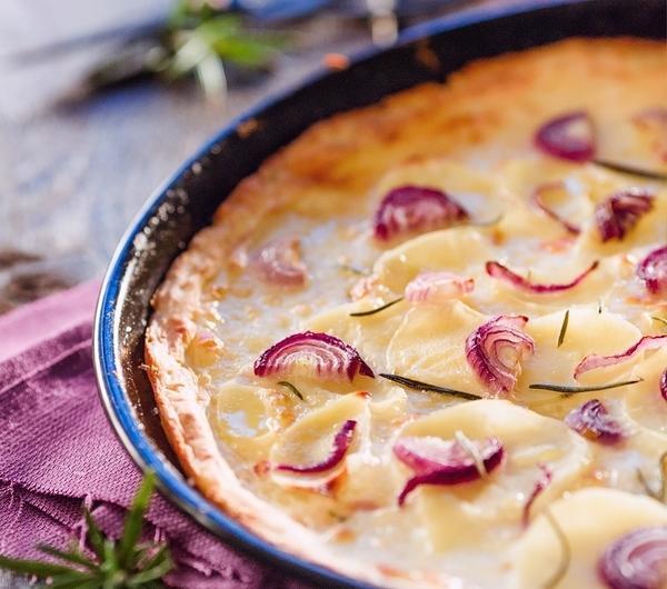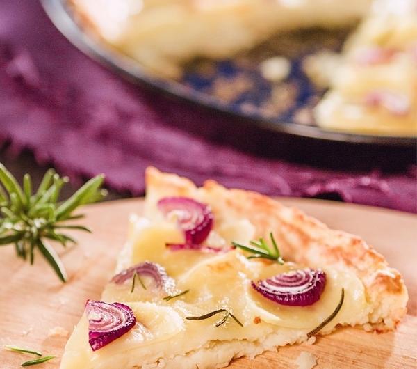 Przepis na 2–3 osobyBezglutenowyZawiera:JajaNabiałJeśli wolisz klasyczny, chrupiący spód pizzy polecam wypróbować bezglutenową pizze bez drożdży .1. Ziemniaki ugotuj do miękkości i przeciśnij przez praskę. 2. Kiedy lekko przestygną (jeśli będą zbyt gorące, jajko się zetnie) dodaj sól, czosnek, rozmaryn, jajko i wymieszaj. 3. Kolejno wsyp mąkę i wymieszaj do połączenia składników. 4. Formę do pizzy lub blachę wysmaruj oliwą, wyłóż na nią ziemniaczaną masę i uformuj ją na równą warstwę. Piecz przez 15 minut w 200°C. 5. Kiedy pizza się podpiecze, wyjmij ją z piekarnika i rozłóż na niej dodatki: posyp startym kozim serem, połóż pokrojone w cieniutkie plasterki ziemniaki, czerwoną cebulę pokrojoną w półplasterki i posyp igiełkami rozmarynu. Skrop wszystko oliwą i posyp gruboziarnistą solą. 6. Piecz dodatkowe 15 minut w 200°C, do zarumienienia. Podawaj na gorąco.