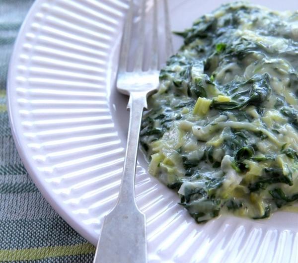 pieprzSzpinak płuczemy i mokry wkładamy do rondelka, przykrywamy i podgrzewamy na średnim ogniu kilka minut, aż zmięknie. Odcedzamy. Gdy nie będzie już zbyt gorący, odcedzamy w rękach nadmiar płynu i grubo siekamy.Przygotowujemy beszamel.